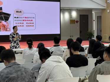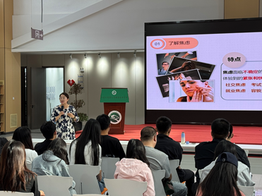 张老师运用丰富的心理学知识,结合呼吸调节技巧、心理减压的手势小游戏等形式,引导同学们学习自我调适、管理情绪的方法。针对不同年级学生的需求,张老师精心设计了内容。讲座着重为新生缓解重新踏入大学生活带来的适应困难,同时帮助24级学生更好地调节心情、为踏入社会,开启下一段人生路程做好准备。