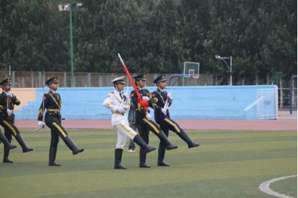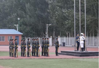 早上7:00,升旗仪式正式拉开帷幕。大学生国防后备营队员迈着铿锵有力的步伐出旗,整齐的队列、昂扬的姿态,尽显青春担当。伴随着雄壮的《义勇军进行曲》,五星红旗冉冉升起,全体师生肃立行注目礼,高唱国歌,向为民族独立和世界和平英勇献身的先烈致以崇高敬意,心中的爱国之情油然而生。