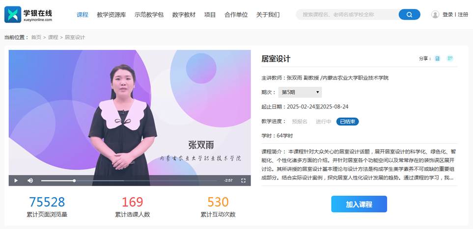 近日,自治区教育厅公布2025年职业教育相关评选结果,我系张双雨副教授主讲的《居室设计》成功入选自治区级职业教育在线精品课程。作为环境艺术设计专业核心课,该课程秉持“职业能力培养为核心、行业需求为导向”理念,涵盖空间规划、风格设计等核心模块,衔接课堂与岗位需求。课程创新采用线上线下混合式教学,搭建多元在线资源平台,以“项目驱动”结合真实案例教学,并邀请企业专家指导,提升课程实用性。此次入选是对课程团队教学改革的认可,也是我系精品课程建设的重要成果。下一步,我系将发挥其示范作用,深化课程建设,助力职业教育高质量发展。