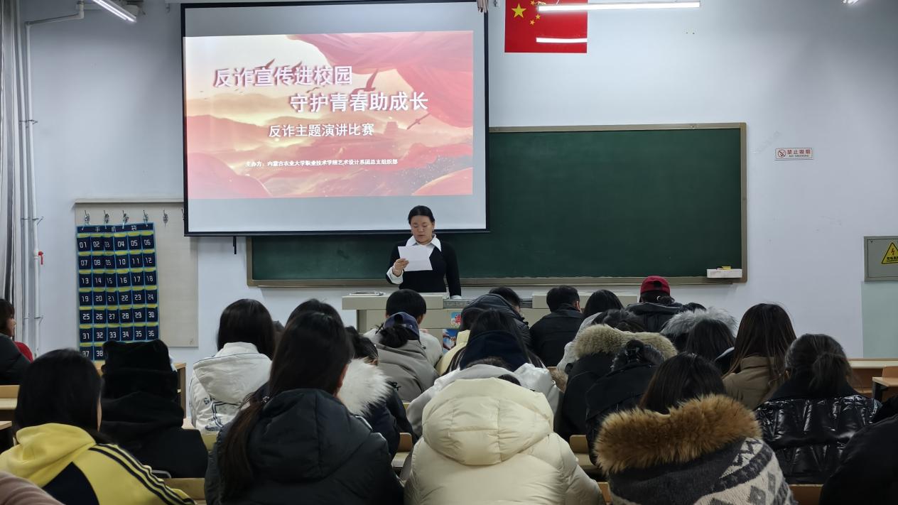 为贯彻落实反诈宣传工作要求,切实增强校园反诈宣传力度,守护学生财产安全与合法权益,11月10日,艺术设计系在教学楼A110成功举办“反诈宣传进校园 守护青春助成长”主题演讲比赛。
