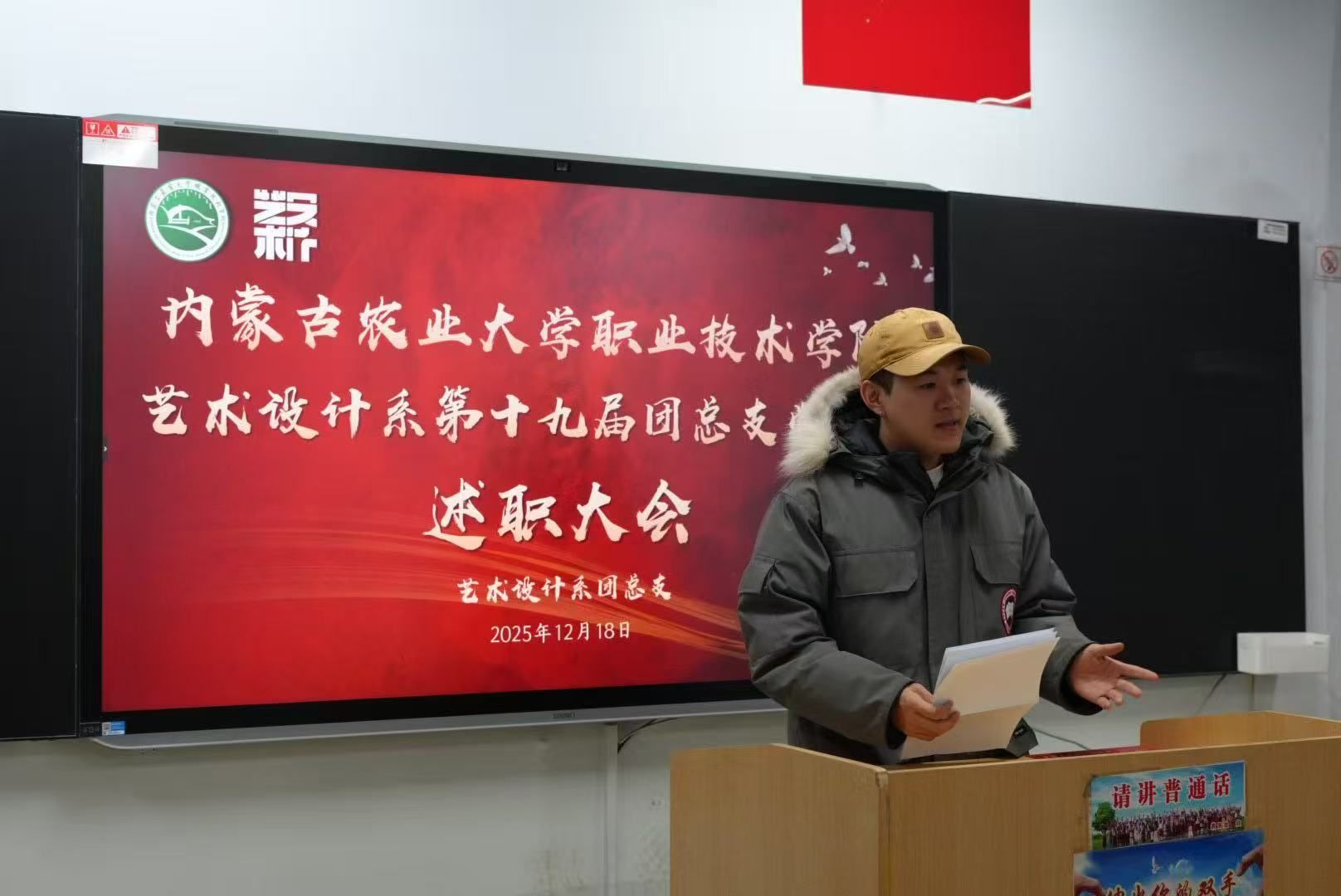 为全面总结本年度团总支学生会工作成效,明晰新学期工作思路,强化学生组织的凝聚力与执行力,12月18日晚,艺术设计系第十九届团总支学生会述职大会在教学楼A209召开。会议由学办主任王超主持,辅导员李雪莹、高晓雅、张重阳,以及团总支学生会主席团、各部门负责人参会。